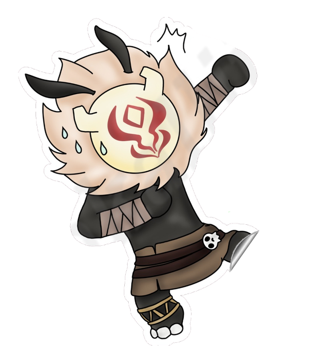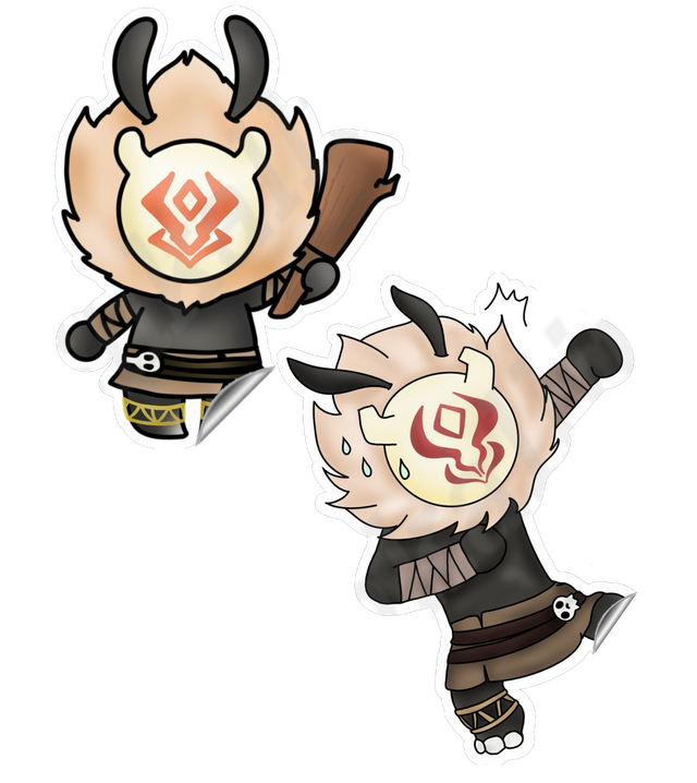 Sticker dessiné à la tablette graphique puis découpé à la main. Représente des Brutocollinus du jeu Genshin Impact.