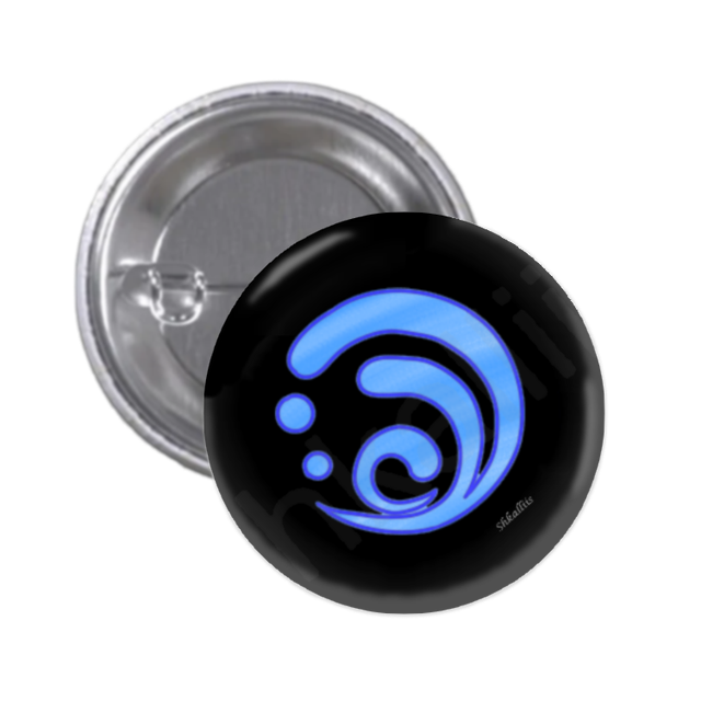 Badge de dimension 44mm. Représentant les divers éléments présents dans le jeu Genshin Impact.
