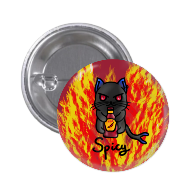 Badge de dimension 44mm. Shkaton (Taiiyoh) est la mascotte officielle de Shkalliis, elle est ici représentée en mode "Spicy".