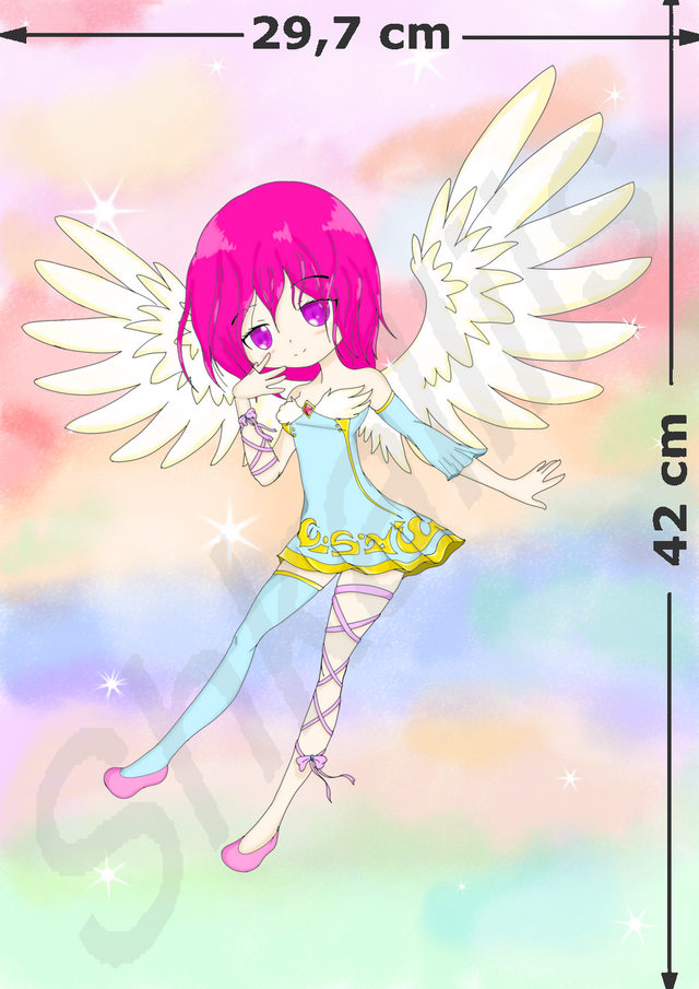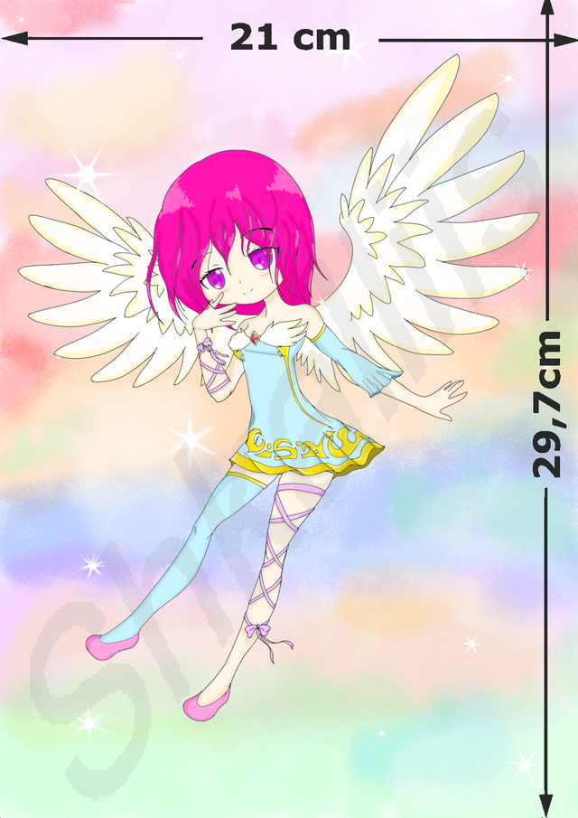 Illustration réalisée à la tablette graphique. Représente ici Angelya, un petit ange venu s'amuser sur la Terre.